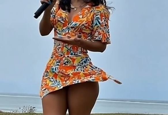 During a segment being filmed outdoors, a sudden gust of wind turned an elegant moment into an unexpected viral sensation. The presenter’s dress, caught completely off guard by the breeze, created a live-on-air moment that viewers won’t soon forget.